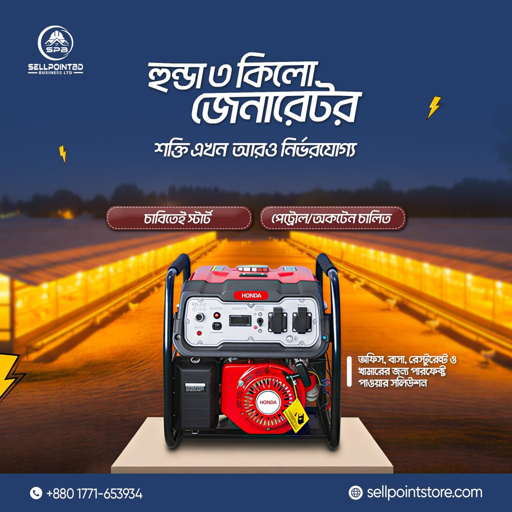 SELL POINT STORE is a 19-years old generator importer, supplier, and seller in Bangladesh. Shopping generator online in BD has never been so easy. Yea– we’ve done it super easy and convenient. SELL POINT STORE is the best generator company in Bangladesh featured with diesel generator, petrol generator, inverter generator, lpg genreator, and Honda generator.